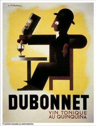 아르데코는 밝은 색에서 어두운 색으로 음영에 변화를 주어 주의 깊게 선택한 형상의 가장자리를 강조하였고, 뿐만 아니라 명백한 기하학성을 차용하였다. 1930년대 초기에 프랑스의 아르데코는 훗날 비웃듯이 '모데론'(외관상 아방가르드의 '기계적인 미학'과 연관이 있는 것 같지만 자동차, 기차, 원영여객선ㄴ 등의 낭만적인 분위기와 더 관계가 깊다)이라고 부르게 되는 양식과 합류하게 된다. 모데른 양식은 원과 직선을 이용하였다. 카상드르에게 기하학은 기본이었다. 이미지 구성, 이미지와 인쇄면 사이의 비율, 레터링 형태 등에 있어서 그러하였다. 그러나 카상드르는 단어에서 출발점을 찾았다. "내 작품의 아이디어는 텍스트와 글자들이 생성하는 조형적인 형상에서 나온다."라고 그는 말하였다. 그의 식전주 포스터(1924)는 파블로라는 이름의 기원에서 모티브를 취하였다. 비행훈련생들에게 내리는 명령인 '높이 날아라'와 음운이 비슷한 데 착안하여 작가는 '까치는 높이 난다'를 연상하였다. 그리하여 까치가 중심 모티브가 되어 좌우대칭으로 놓인 유리잔과 결합되었다. 20년 전에 카피엘로는 이와 비슷하게 상품명을 이미지의 원천으로 삼아 엘버트 로빈의 브랜디 포스터에 기하학적인 레터링과 함께 새를 한가운데 놓은 적이 있다. 그로부터 10년 카상드르는 수백 개의 포스터를 제작하였고, 19225년에는 사선으로 균형을 잡은 렝트랑지장을 비롯하여 여러 걸작을 남겼다. 그는 자신이 광고하는 대상에 미학적인 가치를 두었지만 동시에 다음과 같이 명확히 선언하였다. "포스터는 판매자가 대중에게 보내는 전보 비슷한 의사소통의 수단일 뿐이다. 포스터 작가는 전화교환수와 같다. 그는 메시지를 만들어 내지 않는다. 그는 단지 서로를 연결시켜 줄 뿐이다. 작가가 어떻게 생각하는지 묻는 사람은 아무도 없다. 오직 명확하고, 강력하며, 정확하게 말을 전해주는 것만 필요하다"