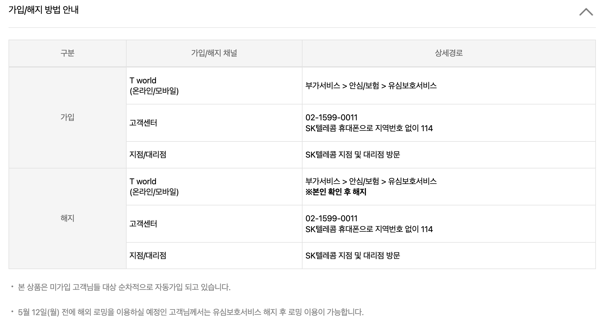 - 유심 보호 서비스에 가입 후, 유심이 분실되거나 도난당했을 때 해당 서비스를 통해 유심을 재발급받을 수 있습니다.
